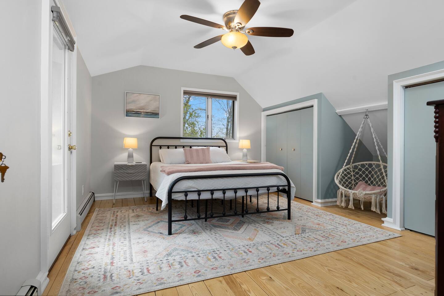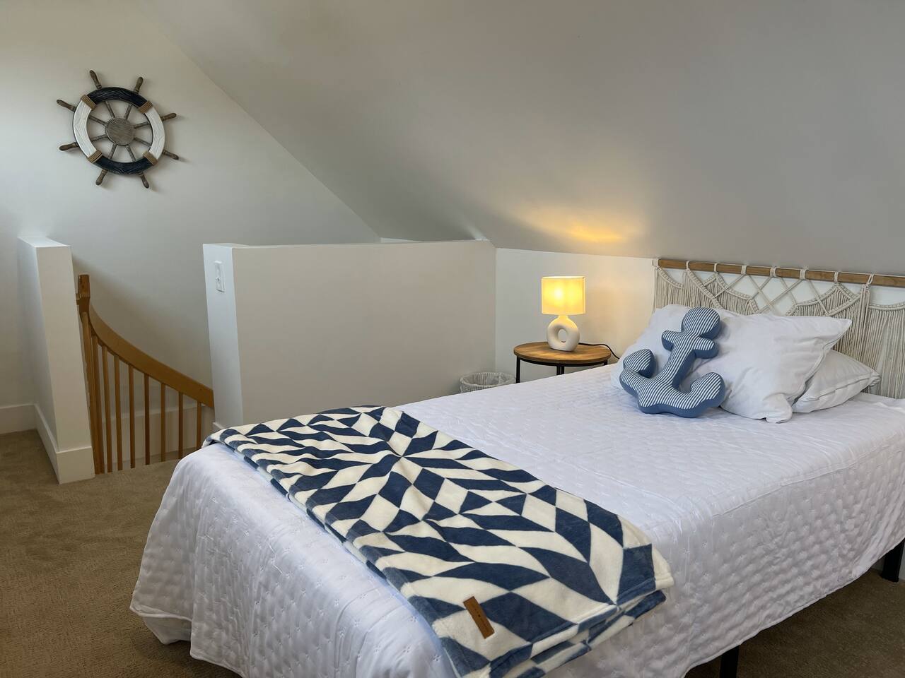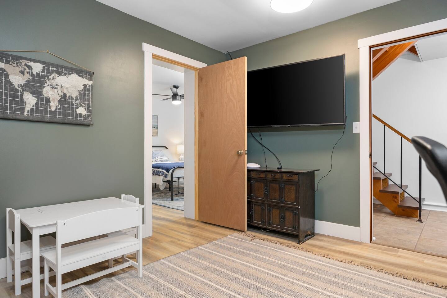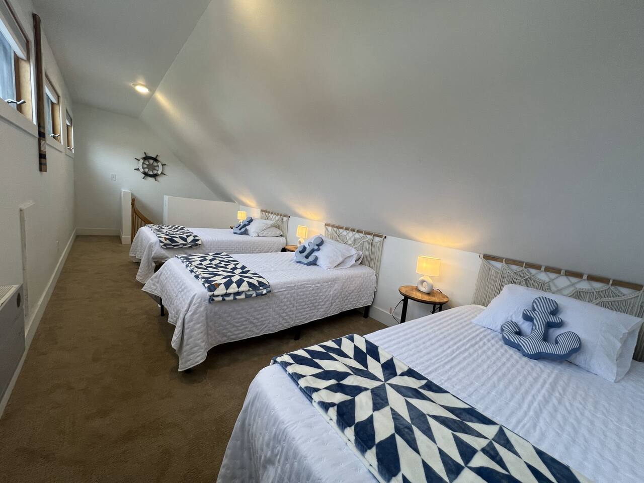 See House Rules for "Winter Lazy Check-out" offering free late check-out for reservations from Dec to Feb. This spacious 6-bedroom, 3 bathroom, with a PlayRoom, and bonus pet room is truly the ideal Leelanau getaway. **Note: In the offseason this property is also available as a 2-Bedroom, 1-Bath. See alternative listing for details. Dine in the open living and dining room area connected to the kitchen which also leads out the deck. The deck has a gas grill, large outdoor dining table, with a fenced in backyard allowing you to relax as your kids and pets roam freely. Tom’s grocery store, one of the nicest grocery stores in Leelanau county, is just around the corner. Sleeping: Comfortably sleeps 16 with 10 beds on 3 separate floors allowing multiple families/group’s to have their own floor and private space. Outdoor areas include a large lot overlooking a Pond and Northport Creek where you can hear the water fall from the dam. Go fishing on the stocked pond or take a scroll down to the Northport Bay where you can go boating or just lay on the beach and relax. Relax in the hot tub or have a meal in the backyard on the outdoor dining table. Feet from all that Northport Village has to offer: Yard & Lake Gastro Pub and Shop: 400 Feet, 1-Minute Walk Barb’s Bakery: 600 Feet, 3-minute walk Mitten Brewery: 900 Feet, 4-minute walk Big Hot Woody Pizza, 900 Feet, 4-minute walk Faro: 900 Feet, 5-minute walk New Bohemian Coffee Shop: .2 miles, 5-minute walk Finger’s Crossed (Formerly Garage Bar-B-Q): .2 miles, 5-minute walk Northport Pub & Grille and Bowling Alley: .3 miles, 6-minute walk Number of Cute Shops within a 5-minute walk Beach and Lake access at Haserot Park: .1 miles, 4.5 minute walk Northport Marina: .2 miles, 5-minute walk Pickleball and Tennis Courts (Braman Hill Park and Recreation Area): .6 miles, 10-minute walk Northport Creek Golf Course: .9 Miles Tom’s Grocery Store: 900 Feet, 4-minute walk EV Chargers (4 Total Chargers): .2 miles, 5-minute walk **Note: Some business are seasonal Exciting Local Destinations Omena: 5.7-miles Suttons Bay: 12-miles Leland: 12-miles Glen Arbor and Sleep Bear Dunes: 30-Miles Traverse City: 29-miles Leelanau Sands Casino: 8.7 Miles Detailed Overview of House High Speed Business Class Wireless Internet (370 Mbps) 1st Floor -Bedroom 1: Queen Bed -Office/Playroom: Sofa Sleeper, Large screen TV w/ Roku, games & books. Located between bedrooms -Bedroom 2: Queen Bed -Full Bathroom 2nd Floor -Bedroom 3: King Bed with Swing -Bedroom 4: 2 Twin Sized Beds -Full Bathroom with Tub -Kitchen -Large Laundry Room off kitchen that also functions as the Dog room. -Dining Room and Living Room: 2 Couches, 2 chairs, and Large Screen TV with Roku 3rd Floor -Primary Bedroom: King Bed and Twin Bed. -Primary Full Bathroom 4th Floor Loft -Loft area connected by a spiral staircase -3 Twin Beds with Nightstands Deck -Fenced in back area -HotTub -Outdoor dining area -Firepit and seating off deck. Front Porch -Directly off first bedroom -Table with 4-chairs to enjoy down time. -Non Smoking, No Parties (See house rules upon check-in for more details)